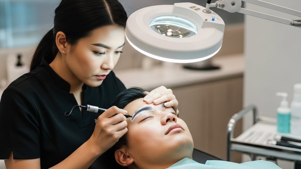 Eyebrow embroidery for men is a semi-permanent grooming treatment that uses fine, hair-like strokes or micro-shading to create fuller, more structured brows.